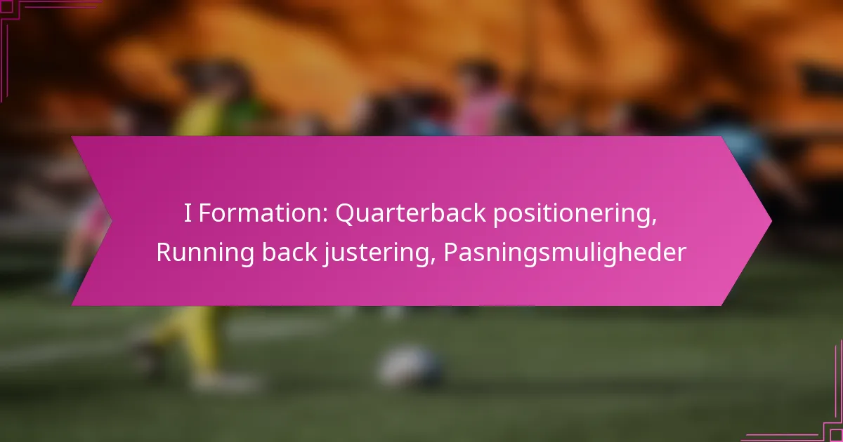 I I Formation er running backs typisk placeret direkte bag quarterbacken, hvilket skaber en afbalanceret opsætning, der forbedrer både løbe- og pasningsmuligheder. Denne opstilling muliggør strategiske spil, der udnytter styrkerne hos running backs, samtidig med at quarterbacken får flere muligheder for boldfordeling.